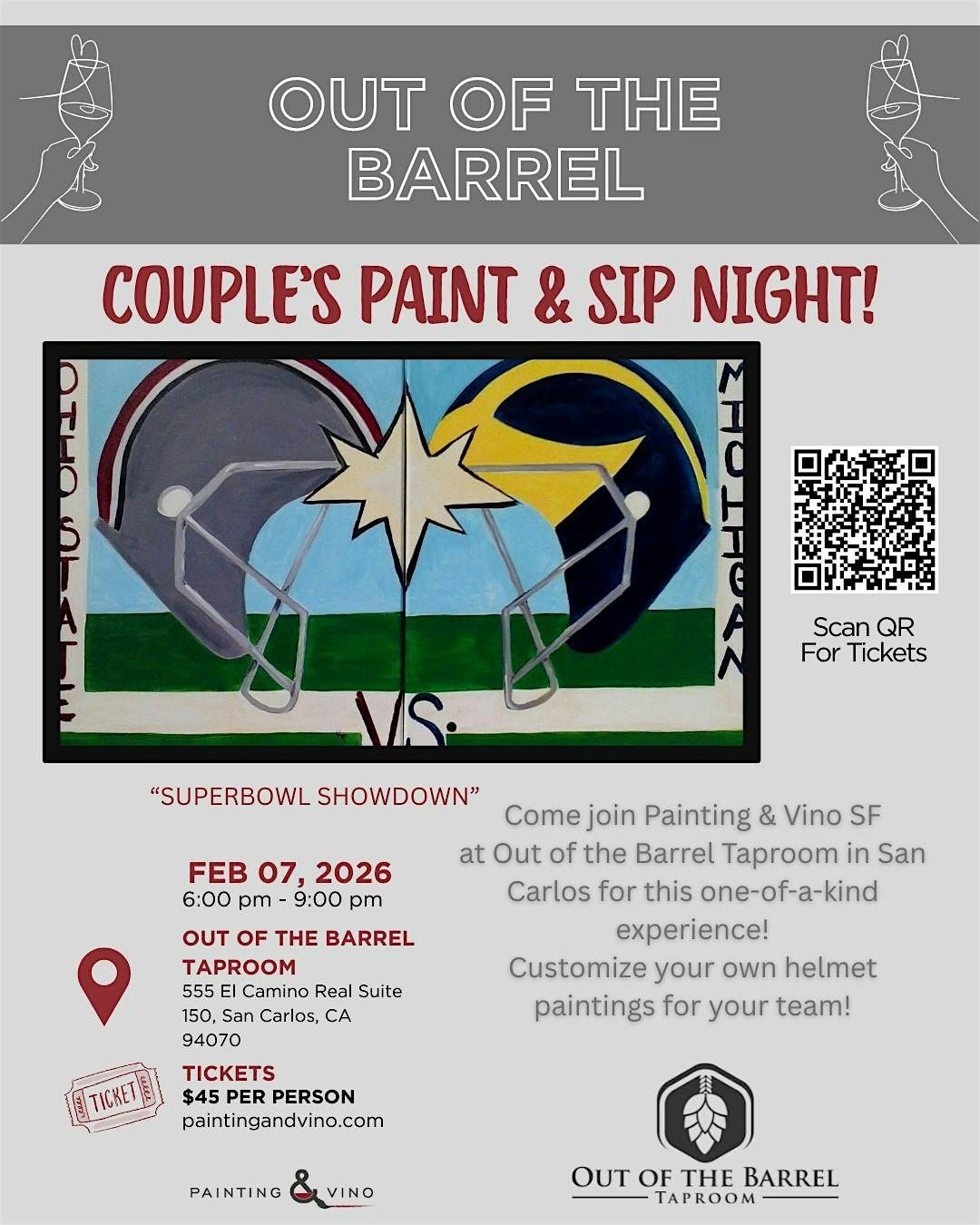 Superbowl Showdown! COUPLE'S Paint and Sip at Out of the Barrel San Carlos