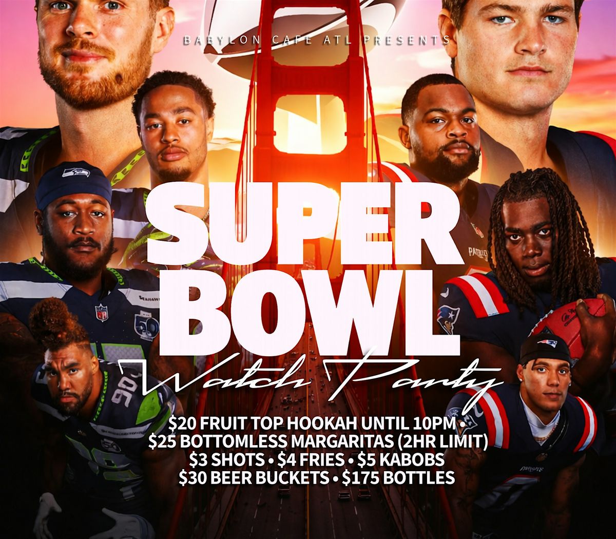 TURN UP for Superbowl Sunday at Babylon Cafe! Featuring food, drink and bottle specials.