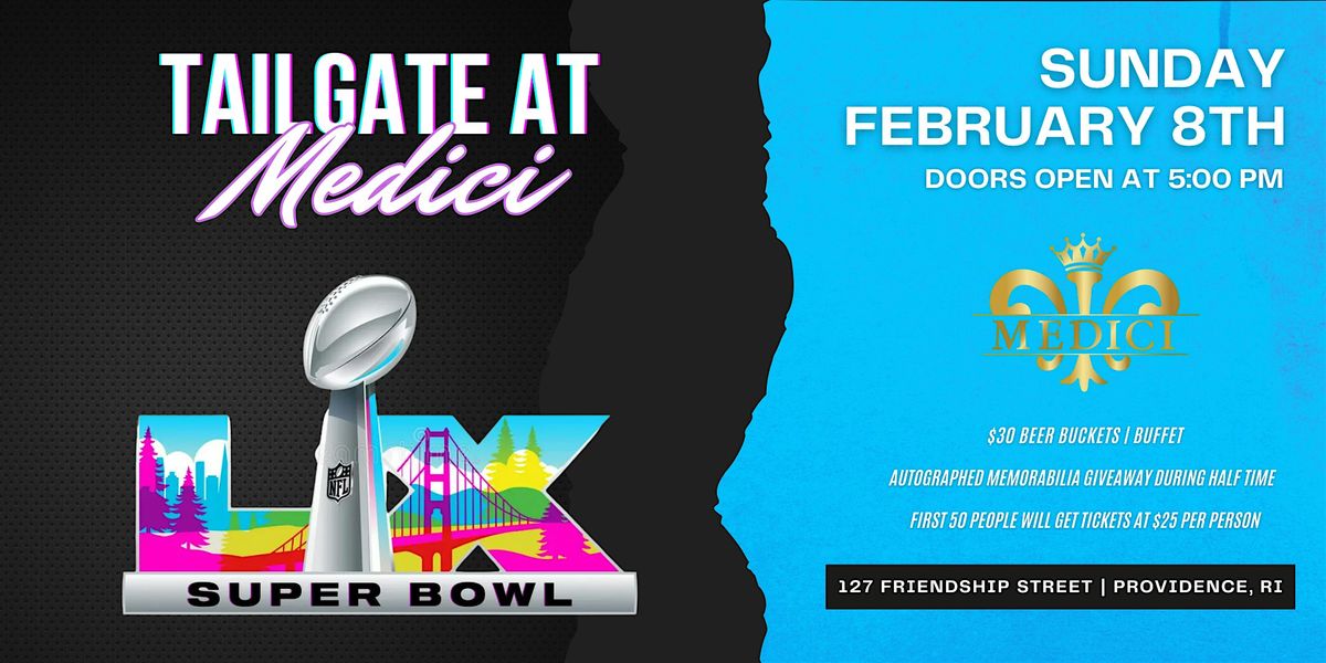Join us at Medici for the ultimate Superbowl Tailgate Party with great food, drinks, and big game vibes!About this Event