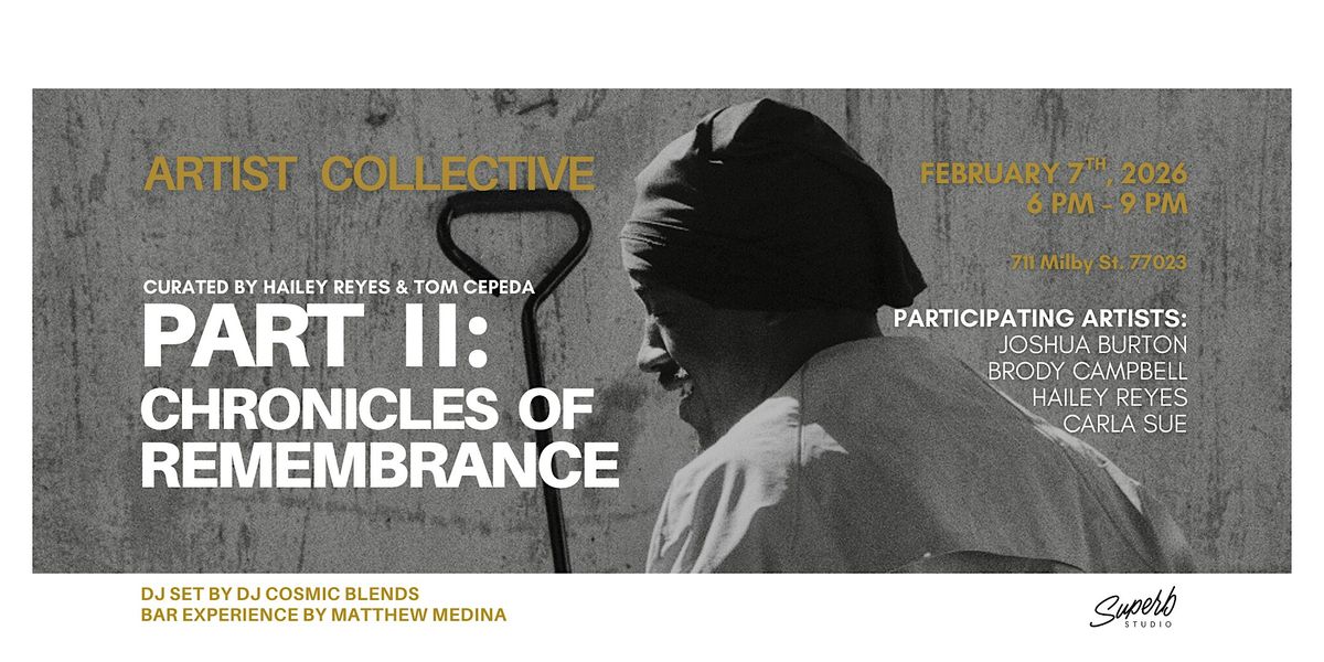 Located in the Cameron Iron Works Building, 711 Milby street Houston Texas 77023. A suggested donation of $10 per ticket goes directly toward the curation of this event. Every contribution, no matter the amount, is deeply appreciated and helps us continue creating meaningful artistic experiences. So dress your best, invite your friends, or come solo for an evening of inspiration and connection.
