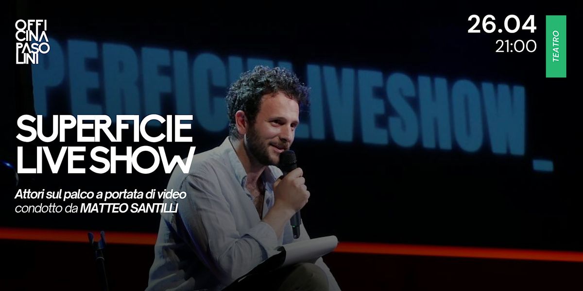 Un nuovo appuntamento con Superficie Live Show – Attori sul palco a portata di video, uno dei format più amati dal pubblico di Officina Pasolini, ideato e condotto da Matteo Santilli.