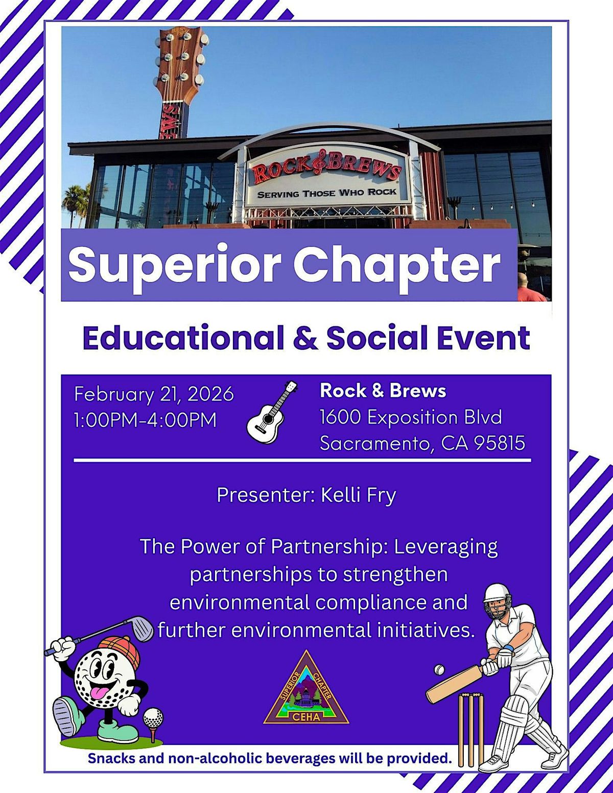 The Superior Chapter invites you to an engaging afternoon of learning, networking, and connection at Rock & Brews in Sacramento. This educational and social event will feature Kelli Fry presenting “The Power of Partnership: Leveraging partnerships to strengthen environmental compliance and advance environmental initiatives.”