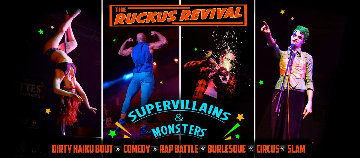 Supervillains and monsters crash the Ruckus stage for a wild night of circus, burlesque, rap battles and full-throttle chaos!About this Event