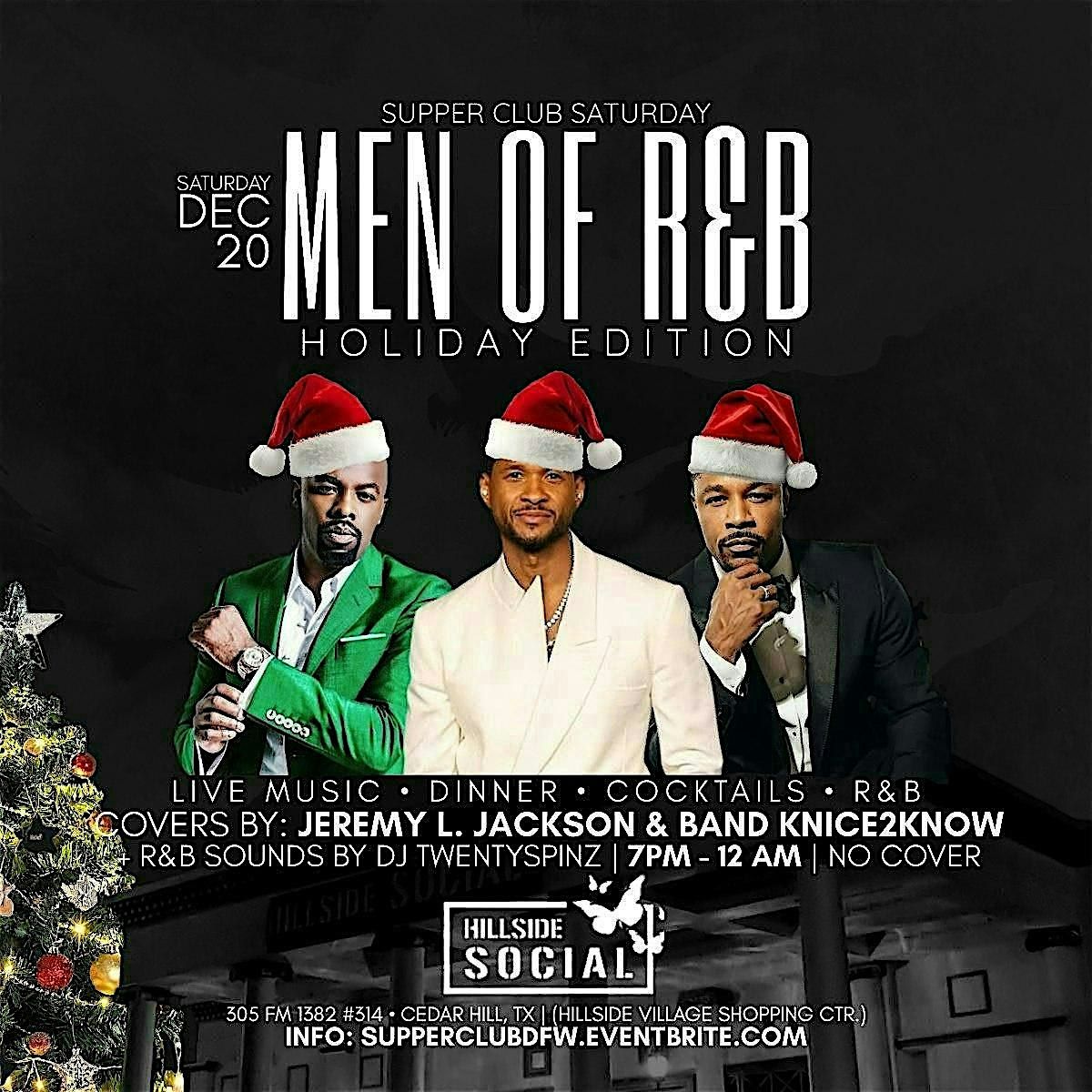 Step into an evening of pure ambiance as SocialiteDFW & Hillside Social host “SUPER CLUB SATURDAY”, the MEN of R&B Holiday Edition— where smooth soulful sounds, stylish energy, and beautiful company come together under the glow of night lights.