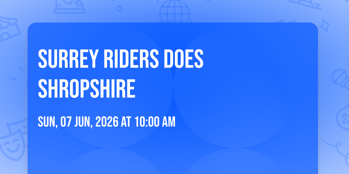We're meeting at Starbucks, A331/A31 at 10am for a 10.30am 'wheels rolling' to travel to Cotswold Barn Cafe, A44, Longborough GL56 0QZ for 1pm. Then onto Shrewsbury arriving at the The Lion Hotel, Wyle Cop, Shrewsbury, Shropshire SY1 1UY where we'll spend the week. Each day we'll be travelling around Shropshire and venturing into Wales.Monday 8th June - Meeting at 9.30am at Fast Trak Diner, SY1 3EH for breakfast, wheels rolling 10.30am for days ride.