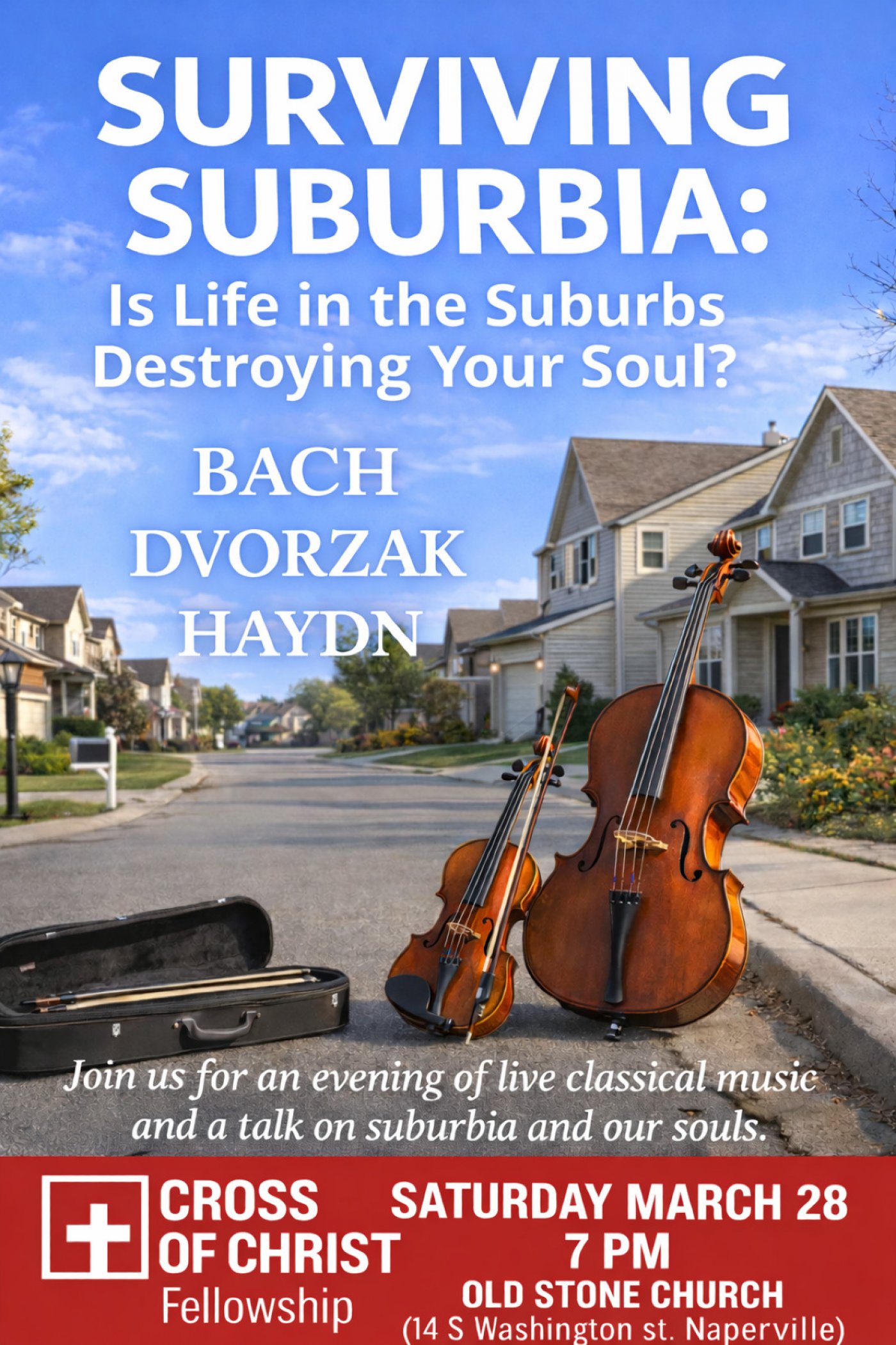 Join us for an evening of classical music and a talk on "Our Souls and Suburbia."