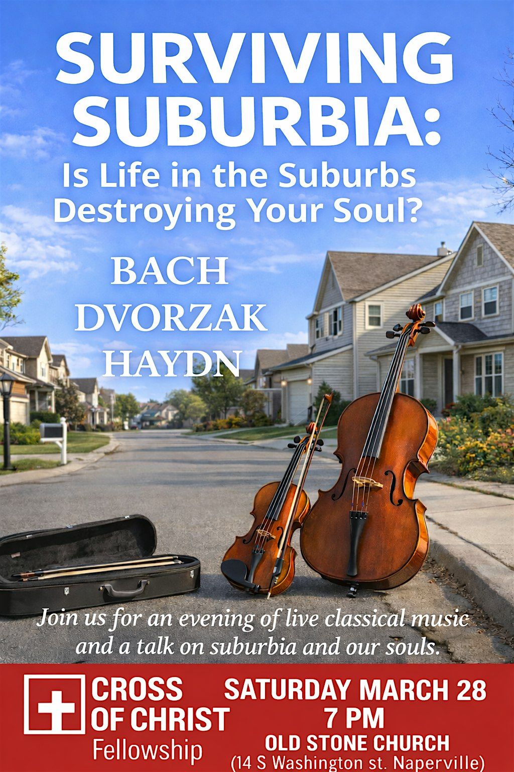 Join us on Saturday March 28 at 7 PM for Surviving Suburbia for an evening of classical music and a talk on "Suburbia and our Souls"