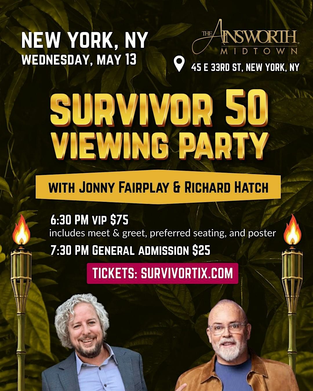 Join Dead Grandma Lie Jonny Fairplay & First Survivor Winner Richard Hatch for a LIVE Survivor Season 50 Viewing Party - Charlotte. VIP is $75 includes 6:30-7:30 meet and greet, and personalized autographed 8.5x11 Richard Hatch and Jonny Fairplay poster. General admission is only $25. Additional Castaways tentatively scheduled to appear.