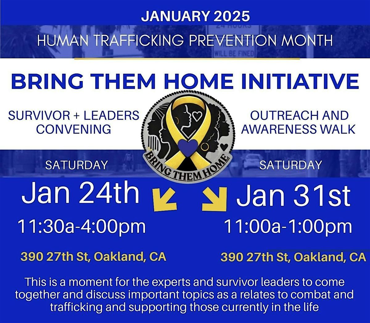 In observance of National Human Trafficking Prevention Month, the Bring Them Home Initiative will be hosting two impactful events.About this Event