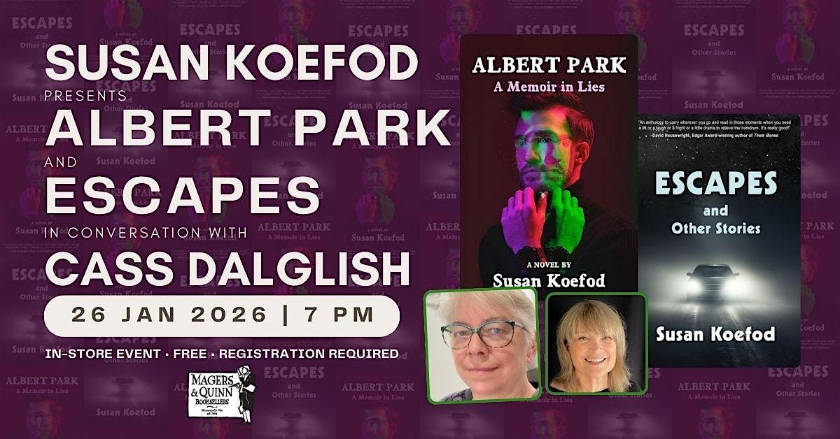 In Escapes and Other Stories, characters take flight to break free from their troubled pasts, murky presents, and uncertain futures. The short story collection introduces Arvo Thorson, a detective who later becomes the protagonist of Koefod's mystery series. Thorson's early appearances showcase his sharp mind, unwavering determination, and personal demons.Escapes and Other Stories is a captivating read for fans of short fiction—offering reading getaways for busy readers who enjoy mysteries, ghost stories, and an excuse to ignore life’s frustrations for a good read.Abandoned child of genius scientists? Proprietor of the Emporium of the Future You? World-famous brain surgeon? Exactly who is Albert Park? Told through Albert Park’s singular—albeit entirely unreliable—point-of-view, Albert Park: a Memoir in Lies is a thrice-told story of how ghosts haunt the present.The opening pages of Albert Park: a Memoir in Lies was a winner of a Loft McKnight Artist Fellowship for Writers.