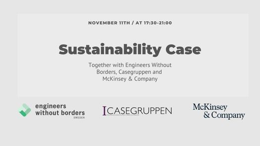 Join us with McKinsey & Company and Casegruppen on a case night with sustainability as a theme. McKinsey & Company is a strategy and management consulting firm where Environmental Sustainability is a big part of their work. November 11th, 17.30-21.00, we are holding an event in Vasa A (Vera Sandbergs allé). There will be 40 spots available for the event, first-come, first served.