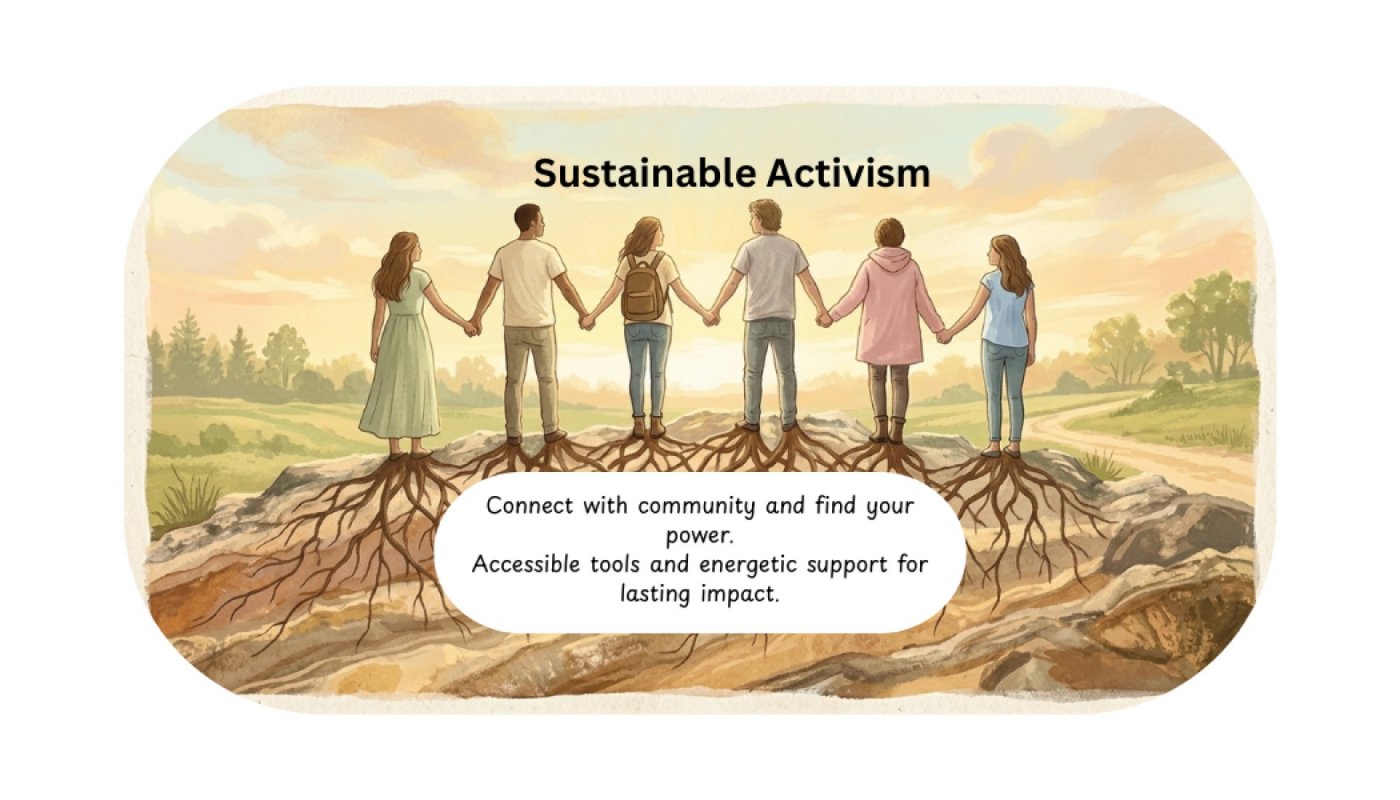• Energy & Community: We will open with a gentle guided grounding practice and sound healing to clear the "activist's heart." Learn energy-clearing techniques and how to set boundaries as an empath so you can hold space for others without absorbing their stress.