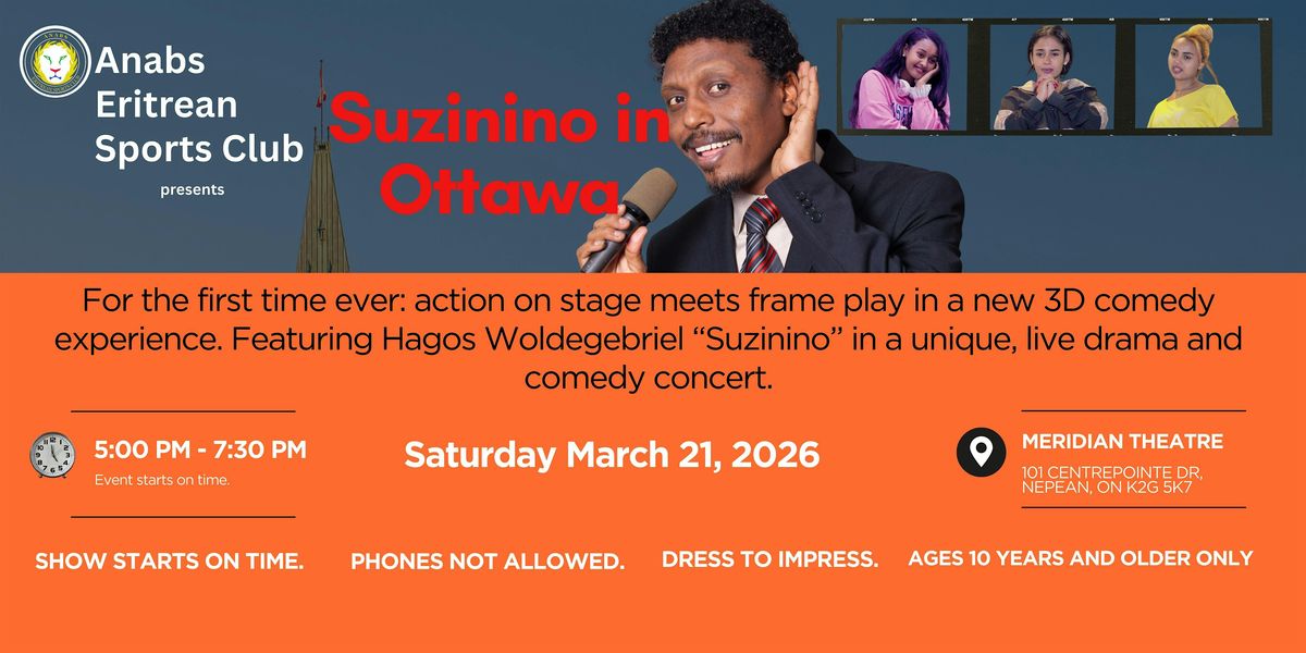 Join the legendary Hagos Woldegebriel “Suzinino” for a live comedy concert full of energy, humor, and unforgettable characters.