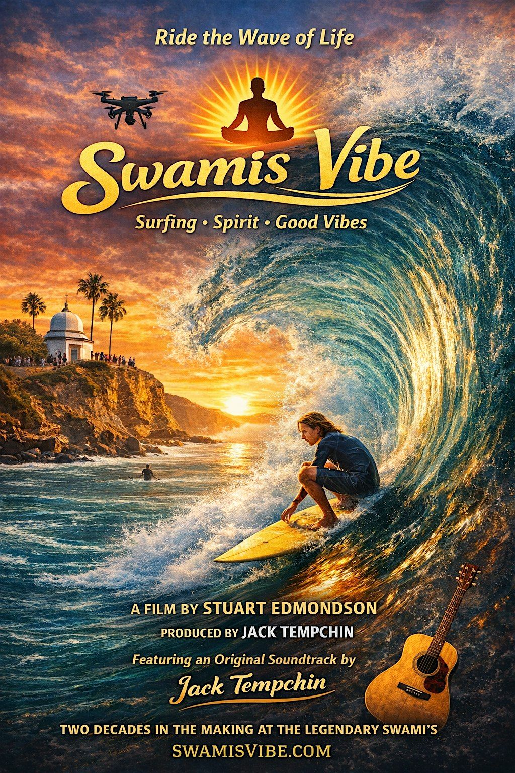 Swamis Vibe is a full-length docu-musical film celebrating the spirit, culture, and community of the iconic Swamis Reef Surf Park in Encinitas, California. Directed by Stuart Edmondson and hosted by Hall of Fame songwriter Jack Tempchin, the film blends documentary storytelling, live musical performances, and breathtaking coastal cinematography captured over more than 20 years.