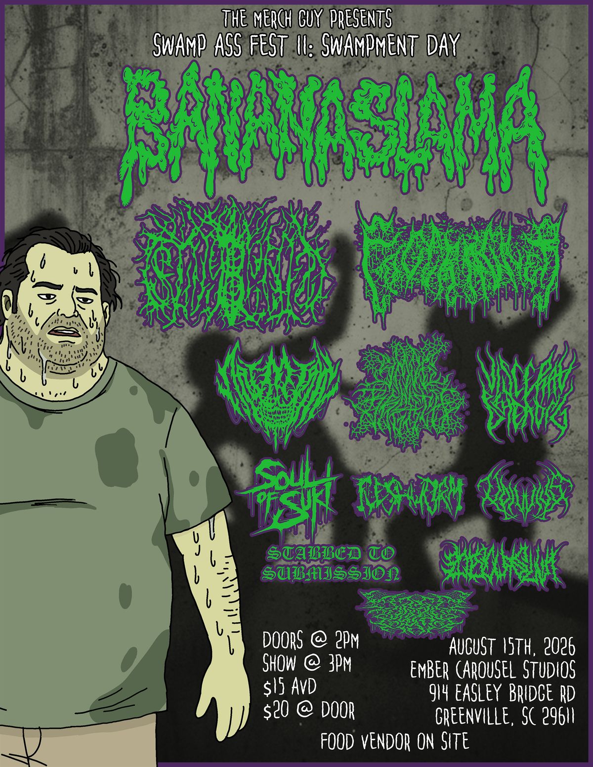 Swamp Ass Fest II: Swampment Day hits Greenville 8/15/26! Catch BANANASLAMA & more at Ember Carousel Studios. Doors at 2PM. Stay swampy!