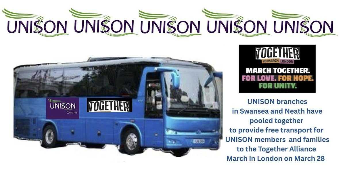 Three branches of UNISON in South Wales have united together to provide free transport for their members to the very important Together March on March 28.