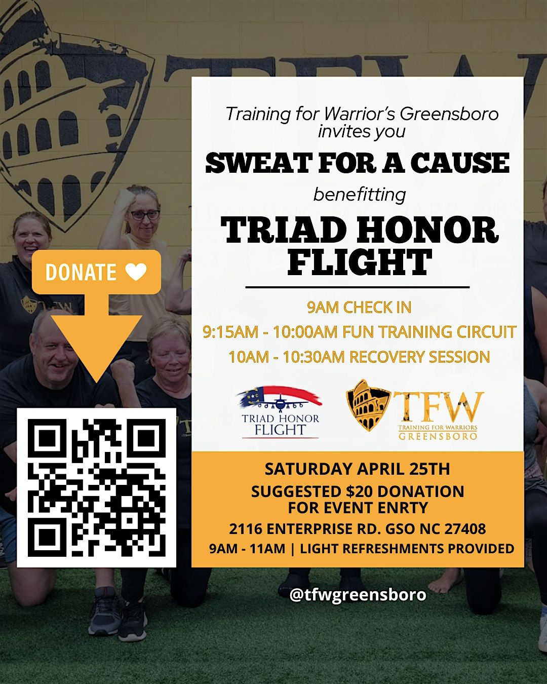 Join us for a powerful morning of movement, community, and giving back at Training For Warriors Greensboro!