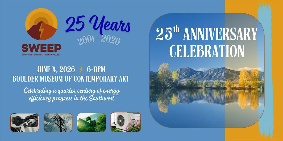 The Southwest Energy Efficiency Project (SWEEP) will celebrate its 25th anniversary on Thursday, June 4, from 6:00-8:00pm, at the Boulder Museum of Contemporary Art in beautiful downtown Boulder, Colorado.