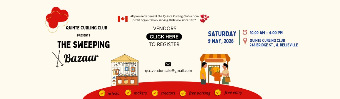The Quinte Curling Club is a not for profit business. A busy sports venue in the winter months and we offer community events in the off season.