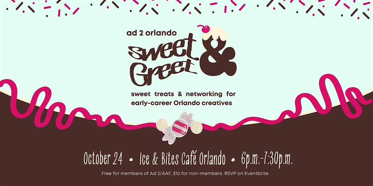 🍧Get advice and swap tips from advertising and creative pros and peersWhether you're looking to make new connections, explore Orlando, or just indulge your sweet tooth, Sweet & Greet is the perfect excuse to treat yourself… professionally and literally.