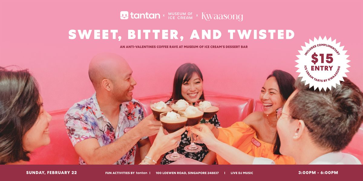 Sweet, Bitter & Twisted is an Anti-Valentine’s Coffee Rave hosted at Museum of Ice Cream Singapore's Dessert Bar and organised by tantan, in collaboration with Kwaasong for exclusive drinks and bakes.