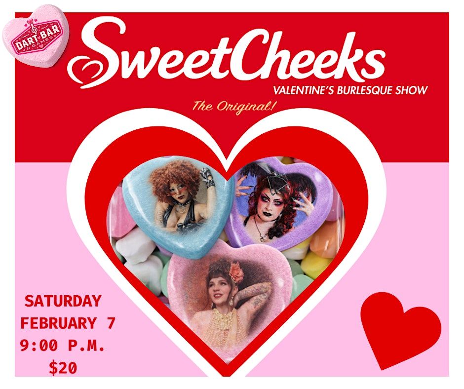SweetCheeks: The Original Valentine’s Burlesque Show takes over Dart Bar on Saturday, February 7 at 9 PM for a night of bold, sultry entertainment. Expect glamorous dancers, playful tease, and show-stopping performances that bring the heat. Tickets are just $20, making it the perfect sexy Valentine’s night out. Grab your date, your friends, or come solo and fall in love with burlesque. 💕