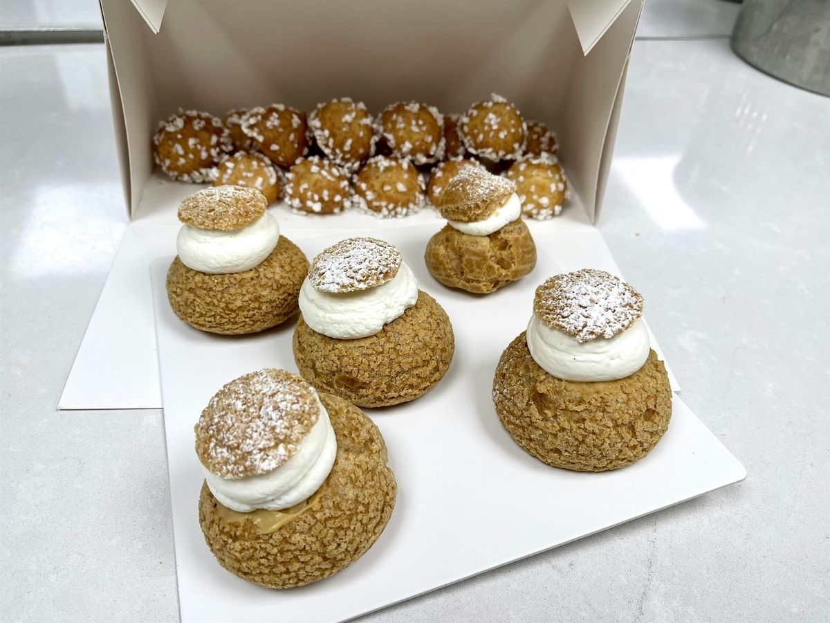 Choux is a versatile pastry that can be made sweet or savory. In this three-hour class, we will be making several classic sweet creations: eclairs, chouquettes, and religieuse (with craquelin) with a crème diplomat filling. Each student will learn the fundamentals of choux, from correctly mixing the batter, to piping and filling. You will leave class with your own filled pastries and the knowledge needed to create countless choux pastries at home.