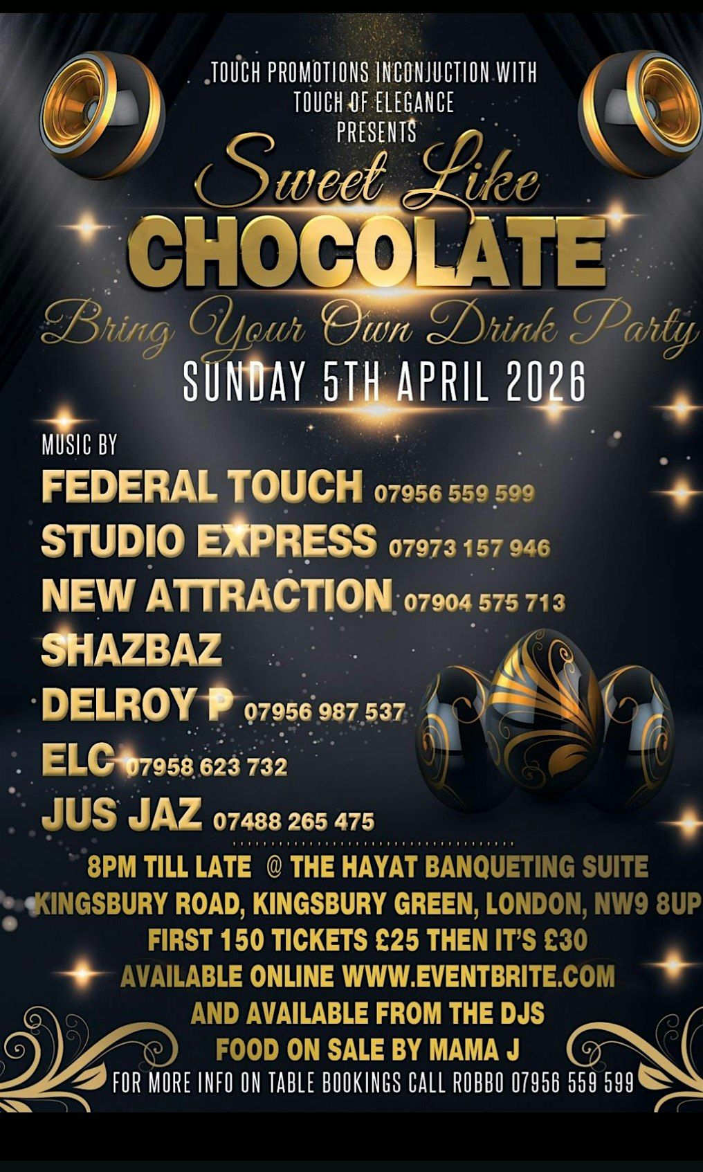 SWEET LIKE CHOCOLATE BRING YOUR OWN DRINKS PARTY MUSIC BY FEDERAL TOUCH STUDIO EXPRESS NEW ATTRACTION SHAZBAZ DELROY P ELC JUS JAZ