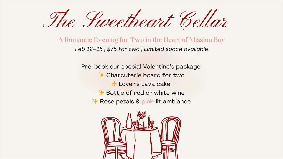 For a limited time, Cellar 68 transforms into the Sweetheart Cellar, the perfect romantic escape in the heart of Mission Bay. Celebrate Valentine’s Day with your special someone in one of the most romantic spots on the bay, lit softly in pink and rose petals on your table.