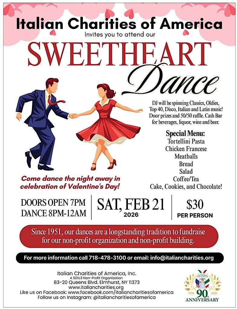 Live DJ will be spinning Classics, Oldies, Top 40, Disco, Italian and Latin music! Hot Buffet, desserts, coffee and tea included. Doors open at 7:00pm. $30.00 per person. Door prizes and 50/50 raffle. Cash Bar for water, soda, and alcohlic beverages. ~Since 1951 our dances are a longstanding tradition to fundraise for our non-profit organization and non-profit building.