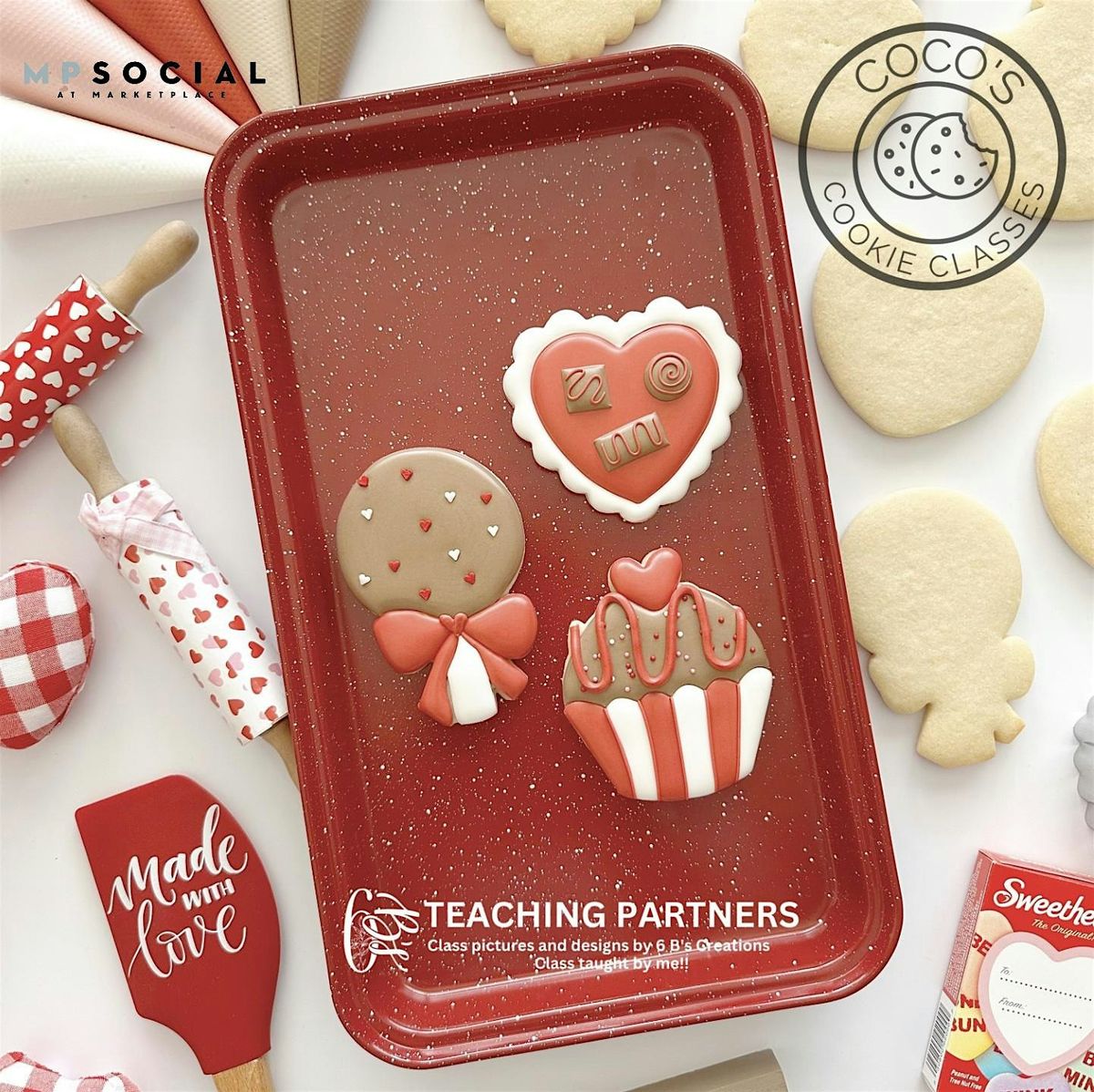 Join Coco’s Confections at MPSOCIAL for a step-by-step Valentine's Day themed cookie decorating class!