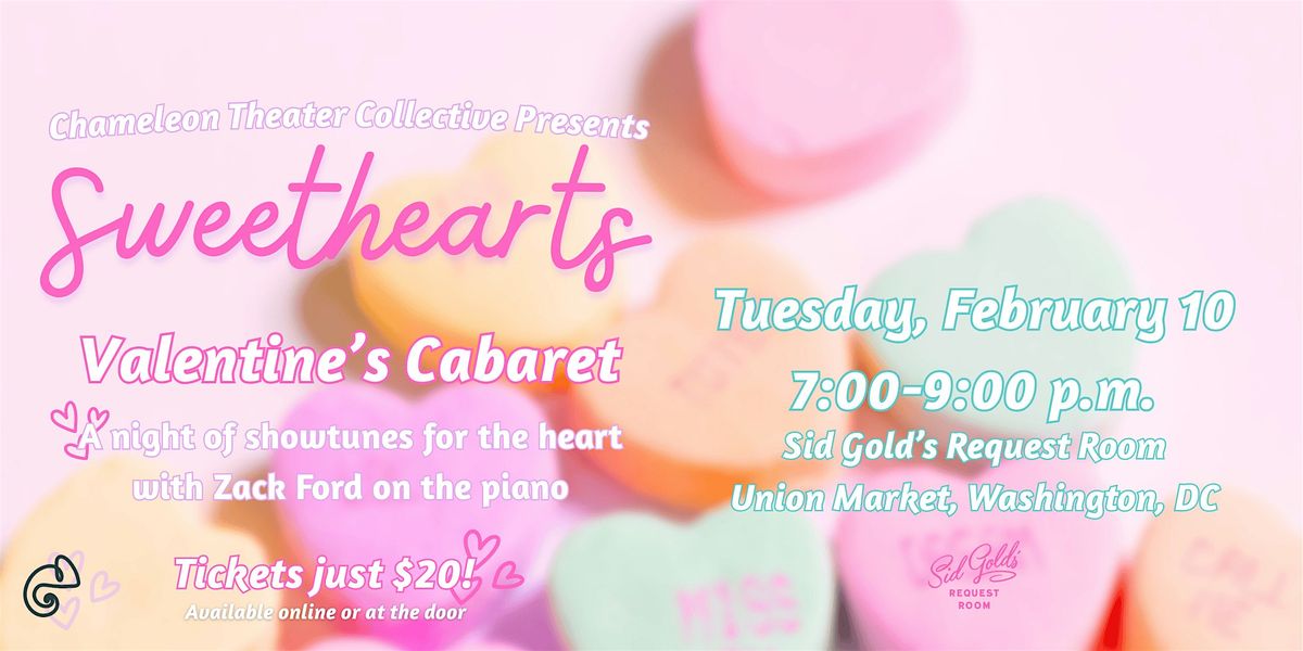 Get ready for a night full of romance, laughter, and great vibes! Join us in person for Chameleon Theater Collective's Sweethearts Valentine's Cabaret—a cozy, fun-filled event perfect for couples and friends alike. Expect charming performances of your favorite showtunes, sweet surprises, and an atmosphere dripping with love. All with pianist Zack Ford. Don’t miss out on making magical memories this Valentine’s Day!