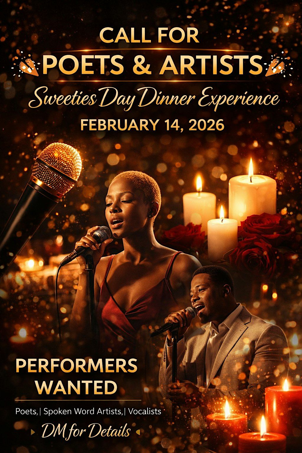 A romantic dinner experience featuring select performers and artists sharing intimate, low-key moments throughout the evening.