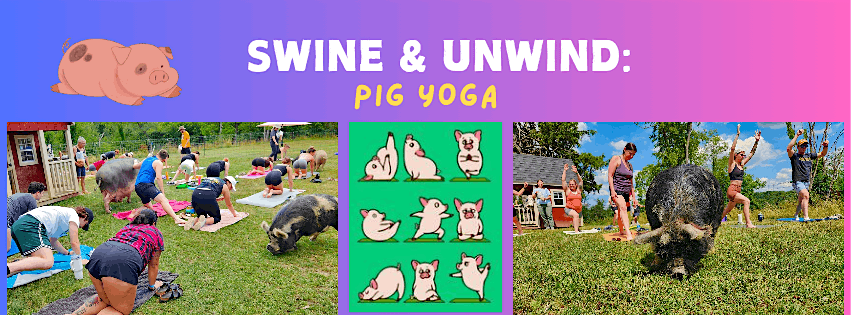 NOTE THE NEW 11AM START TIME! Come join us for pig yoga in our front yard! Master your "downward hog" while surrounded by our resident piggies. Great for beginners and experienced yogis. The cost is $25 per person, kids under 13yo are $15 each.Come join us for pig yoga in our front yard! Master your "downward hog" while surrounded by our resident piggies. Great for beginners and experienced yogis. The cost is $25 per person, kids under 13yo are $15 each.