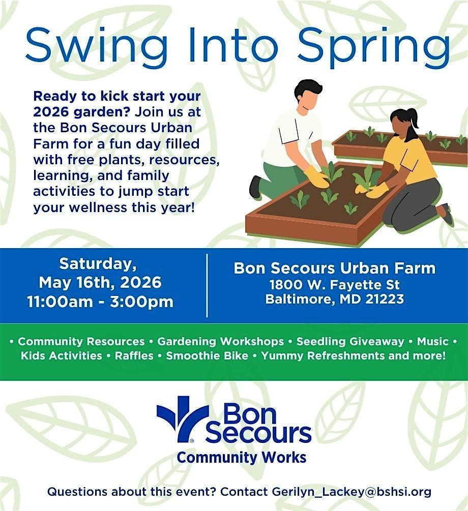 Bon Secours Urban Farm is hosting it 4th annual Swing Into Spring event! Enjoy free seedlings, workshops, resources, food, music, and more!About this Event