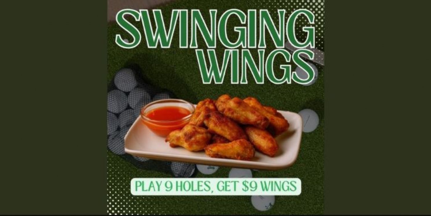 Join us for Swinging Wings Fridays, where great swings earn even better bites. Play 9 holes and unlock 12 wings for just $9.