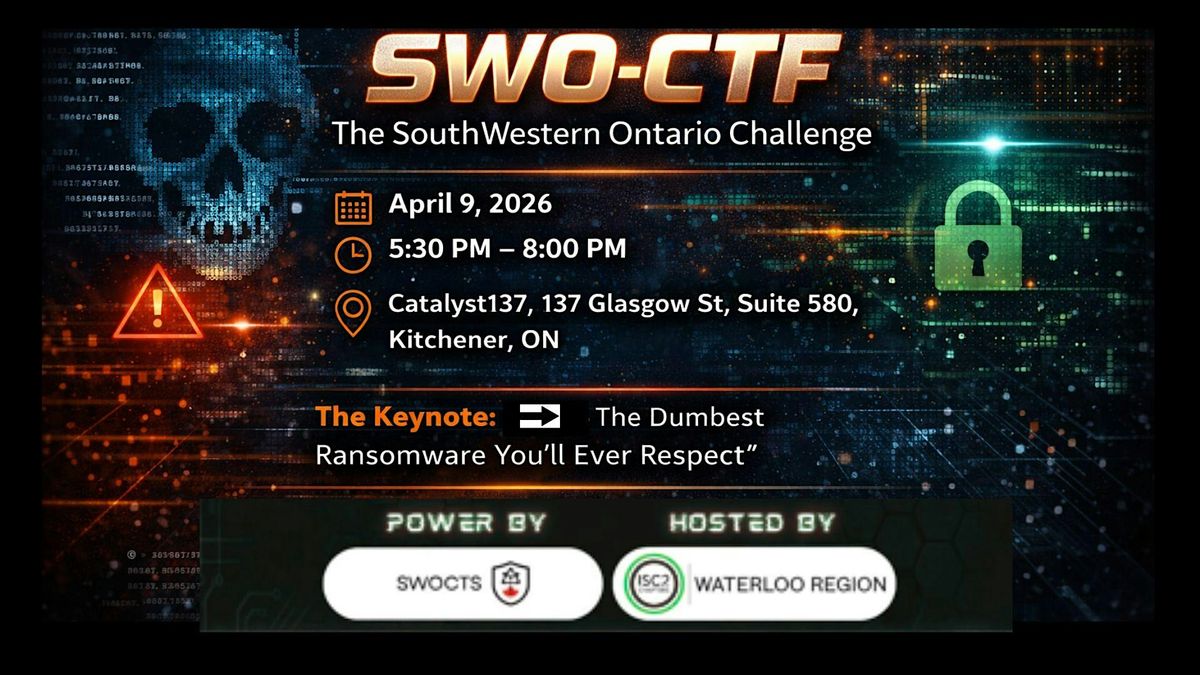 Welcome to SWO-CTF, a technical initiative bringing together the London and Waterloo cybersecurity communities. Weβre moving past the marketing buzzwords to focus on the reality of modern threats. This evening features a blunt technical keynote followed by a high-intensity, hands-on competition.