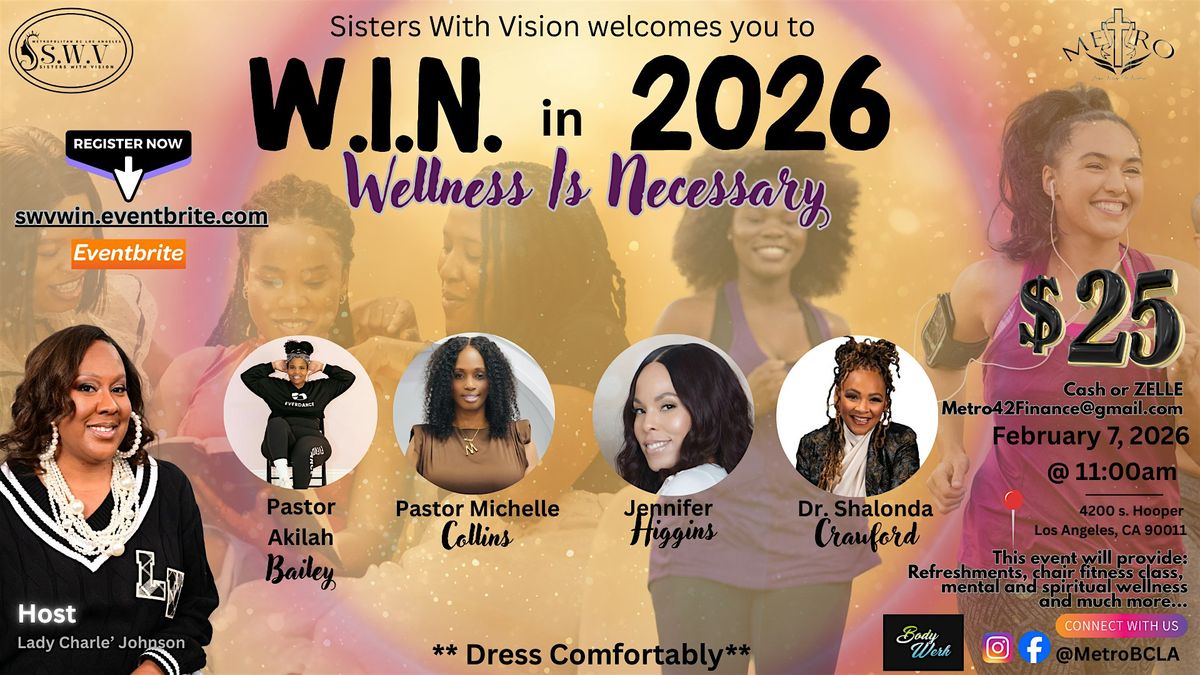 We will focus on spiritual, mental, and physical wellness. Please dress comfortable for the workout portion. Registration is required. Your spaced is reserved ONLY after we receive your registration and zelle or cash payment to [email protected]. (please put SWVWIN in the zelle memo)