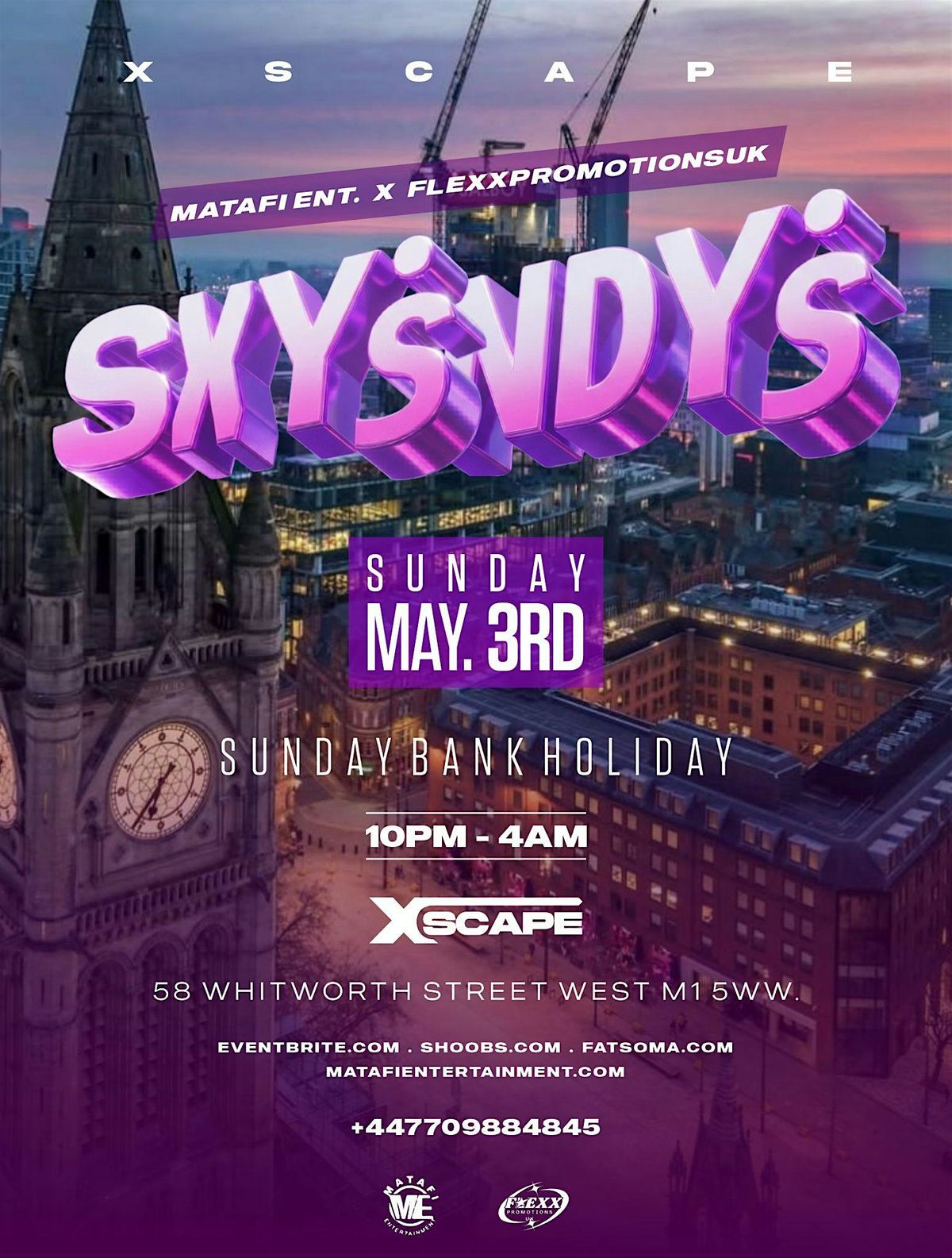 Close out the Bank Holiday weekend in style at SXYSNDYS: BANK HOLIDAY, taking over Xscape Manchester on Sunday 3rd May 2026, from 10PM – 4AM.