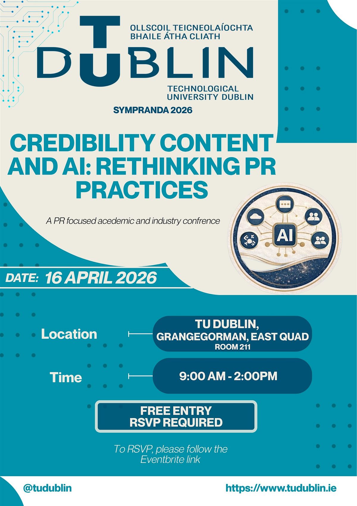 The theme of SymPRandA 2026 Credibility, Content and AI: Rethinking PR Practices invites scholars, doctoral researchers and communications practitioners to interrogate critically what public relations becomes when communication is automated, authenticity is programmable, and persuasion is increasingly machine-led. Acknowledging that AI can deliver benefits to communications practice, this symposium provocatively asks about the use of AI.