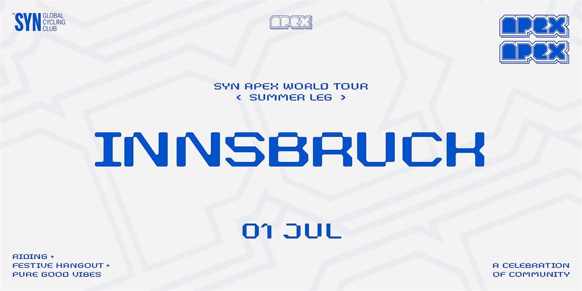 The SYN is coming to Innsbruck to ride & vibe with you on and off the bike! On a summer after-work evening, we head out of the city for a 2–3 hour ride together with our local community.We’ll wrap things up with a small party and great vibes at our Innsbruck retail partner Bike Klinik.