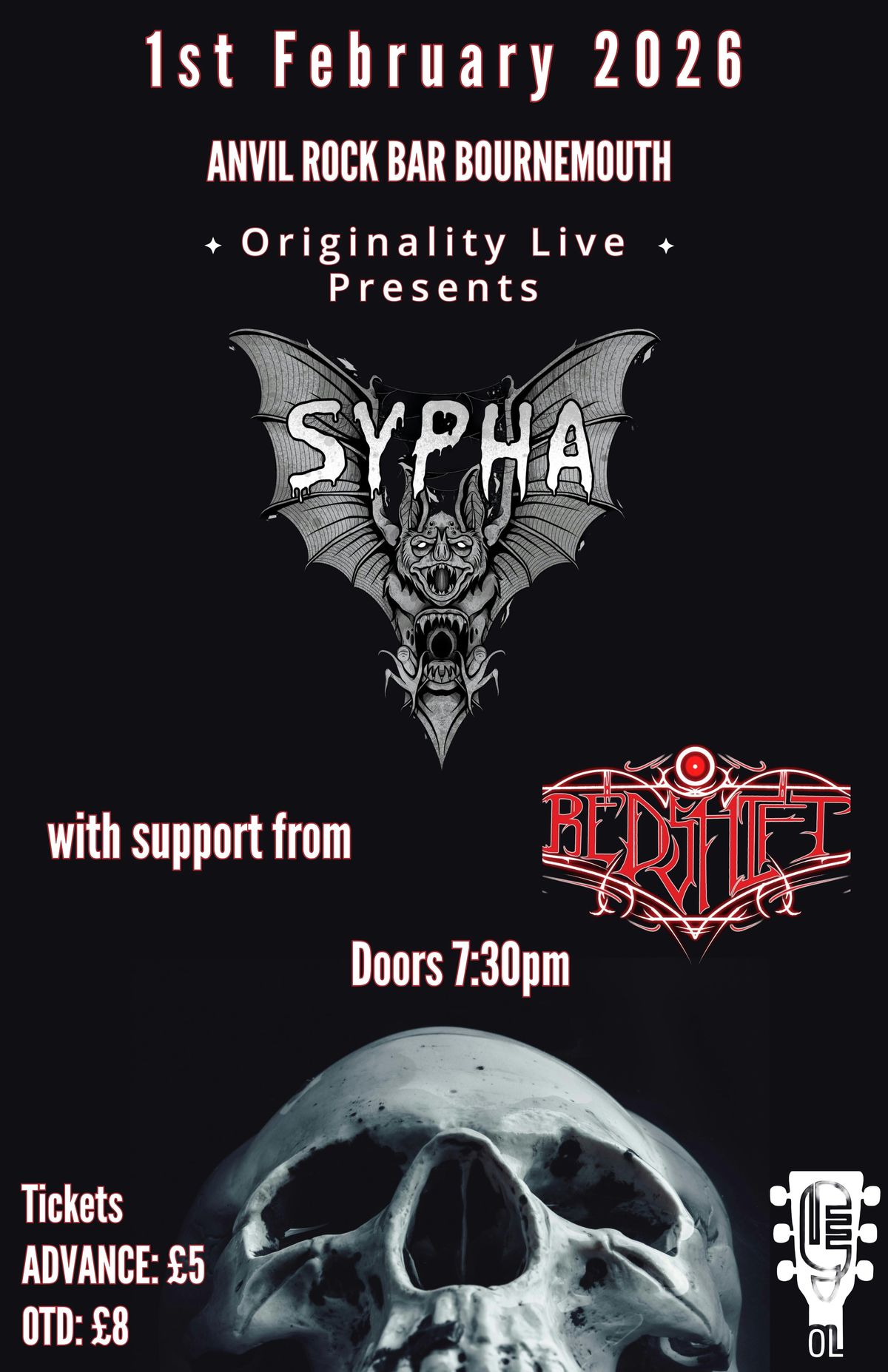 Sypha, one of Brightons fastest rising metal bands, kicks off their year with an epic tour, coming for the first time to Anvil Rock Bar in Bournemouth. With support from local up and comer Redshift, Originality Live brings you a night of original music and a welcoming community of music lovers.