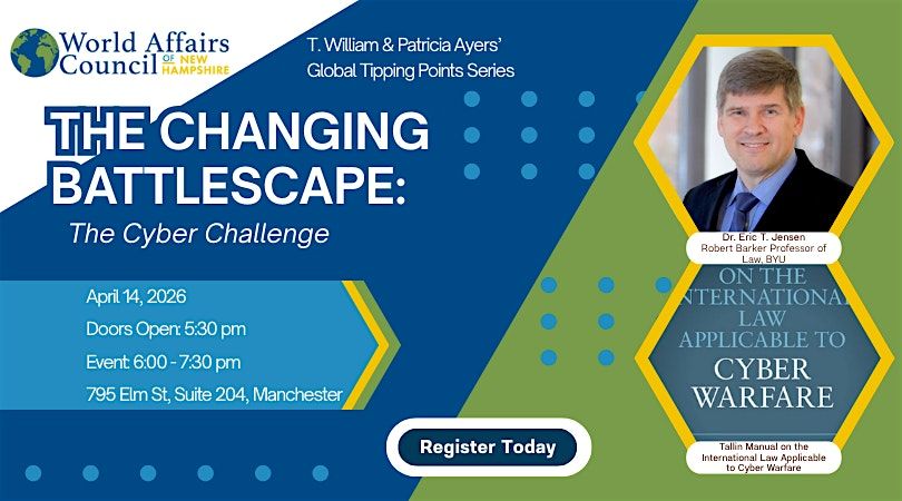 Join the World Affairs Council of New Hampshire, in partnership with the NH Chapter of the Fulbright Association, for a timely conversation with EricTalbot Jensen of Brigham Young University, one of the world’s leading experts on cyber conflict and the law of armed conflict, as we explore how cyberwarfare is reshaping modern statecraft. In this moderated community discussion, Jensen will examine how governmentsand non-state actors use cyber tools to spy, disrupt, and influence adversaries, where the legal and ethical boundaries lie, and what happens when digital attacks begin to look more like acts of war.