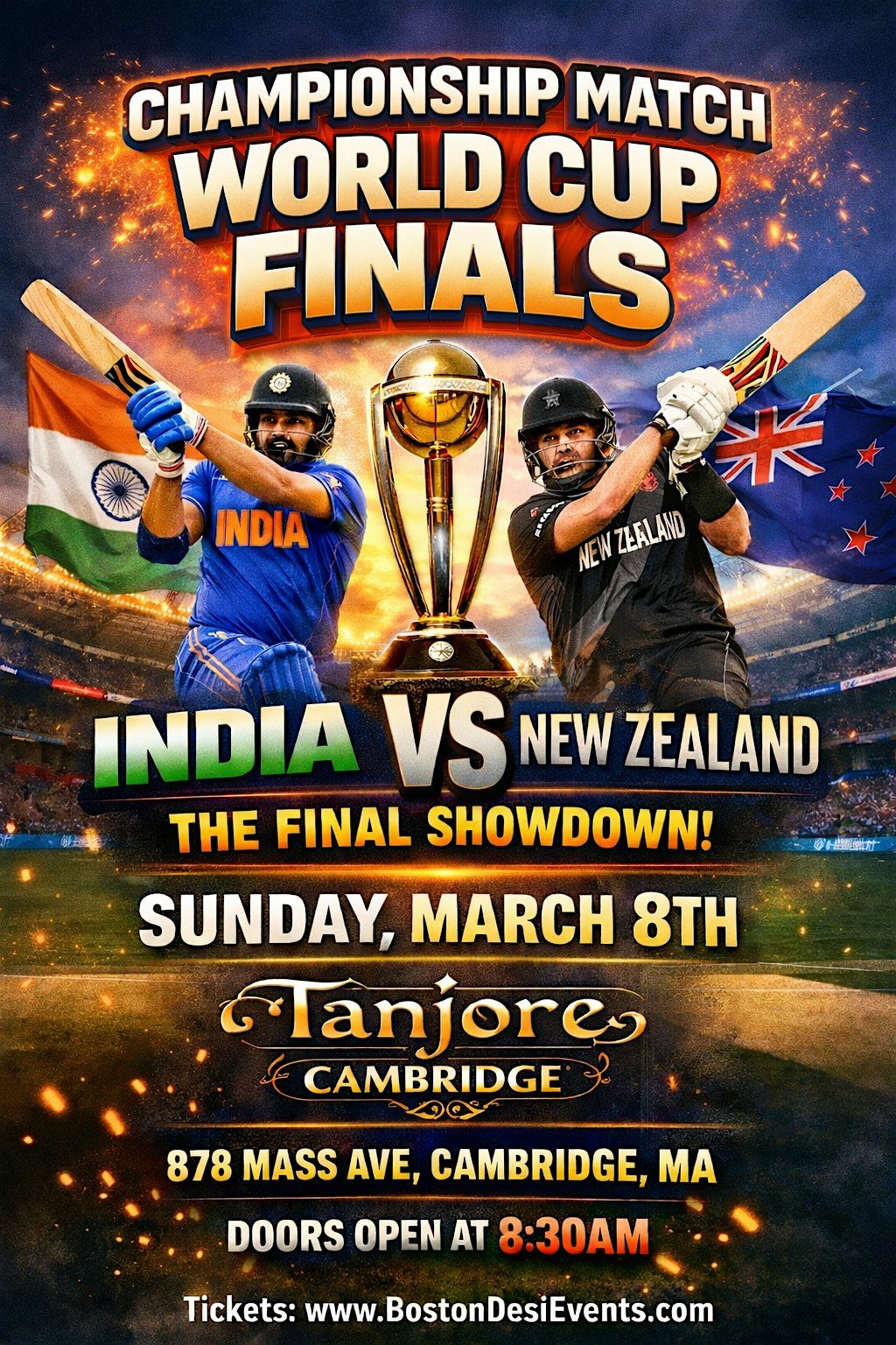 Welcome to the World Cup Cricket Final Watch Party at Tanjore, Central Sq ! Join us for an unforgettable experience as we cheer on our favorite teams in the ultimate showdown.