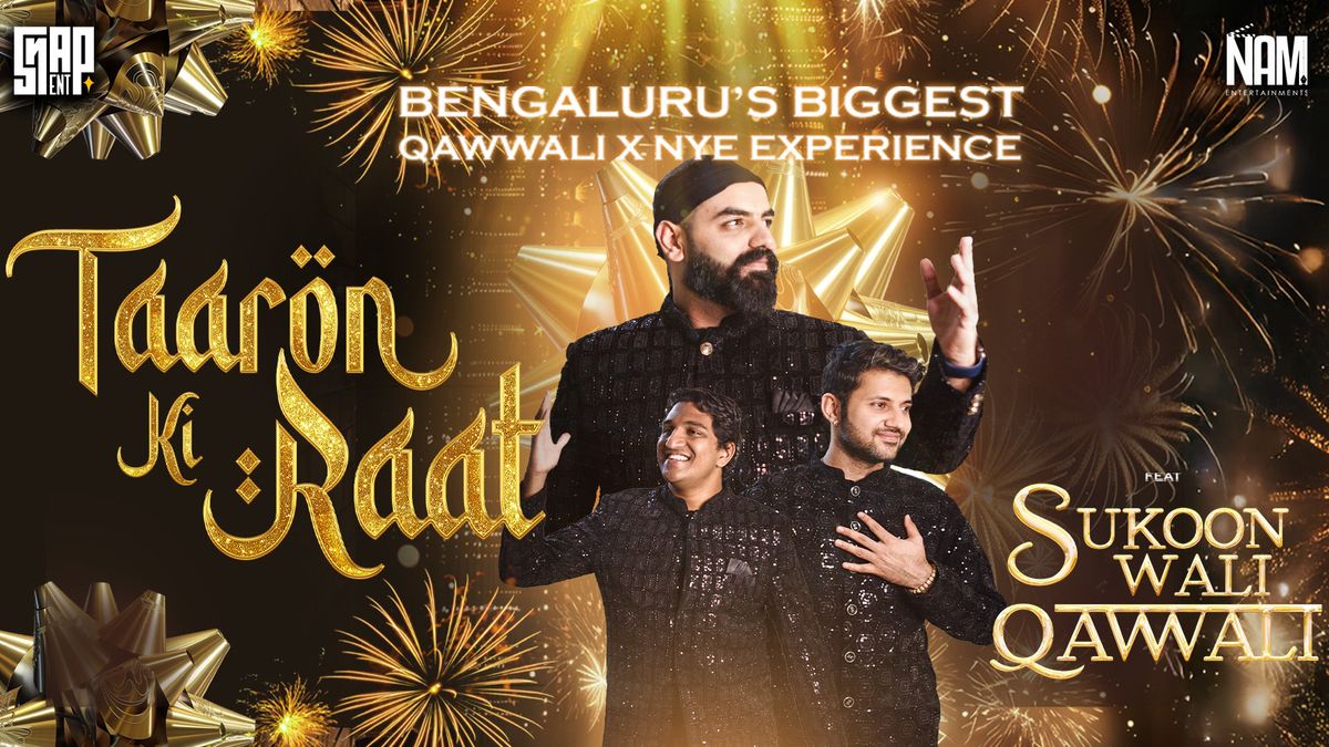 TAARON KI RAAT – Ft. Sukoon Wali QawwaliThe Biggest Qawwali × NYE ExperienceStep into a magical night under the open sky as we welcome the New Year with the soulful sounds of Sukoon Wali Qawwali. Taaron Ki Raat brings you a grand celebration filled with music, festivity, and unforgettable moments at our open-air venue.What to Expect:Soul-stirring live Qawwali by Sukoon Wali QawwaliSpectacular firecracker show at 12 AM to ring in the New YearFood & beverage stalls serving delicious bites and refreshing drinksA family-friendly atmosphere for all age groupsAmbient décor, festive energy, and a night full of celebrationCelebrate beneath the stars as tradition meets festivity in the most electrifying way.This New Year’s Eve, let the taaron ki raat shine brighter with you. 🌟