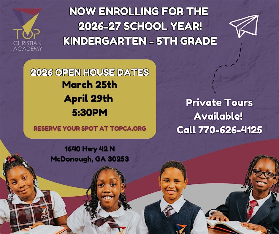 Are you looking for an excellent elementary school in McDonough, GA? Look no further, TOPCA is ready to serve your K-5TH grade scholar!About this Event