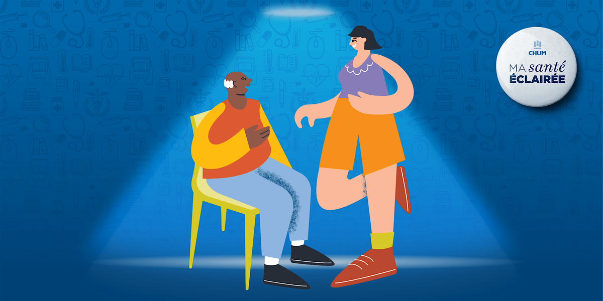 Pour souligner la Journée nationale des proches aidants, la Bibliothèque du CHUM vous invite à une discussion ouverte sur le rôle essentiel des personnes qui soutiennent un proche malade. Louise Laviolette, patiente, et Mario Fortin, qui l’accompagne, partageront leur expérience. Émilie Tremblay, du Centre d’excellence sur le partenariat avec les patients et le public (CEPPP), apportera aussi son éclairage. Ils parleront de leur parcours de soins, de l’importance d’être bien informé et du soutien nécessaire tout au long du chemin.