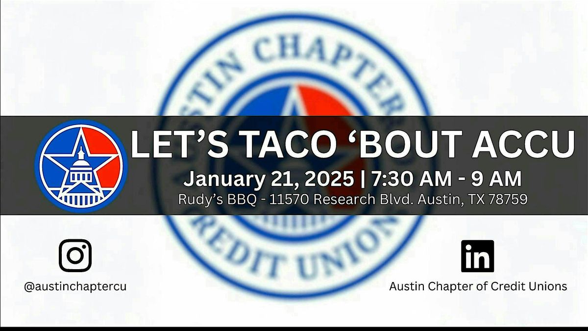 We are kicking 2026 off with a breakfast social at Rudy’s BBQ to “Taco” ‘bout ACCU!