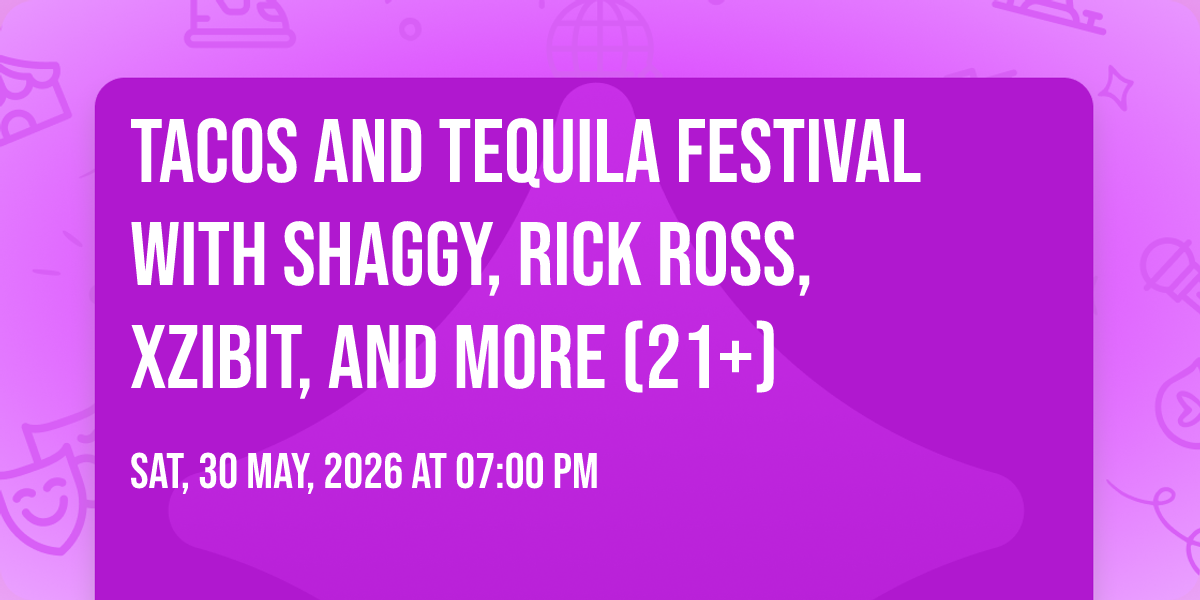 📍 Location: 42.9169, -88.0174🎉 Welcome to Tacos and Tequila Festival with Shaggy, Rick Ross, Xzibit, and more (21+), where dreams come alive and possibilities are endless! 🏛️ Join us at Franklin Field - WI in the heart of Franklin, WI for an event that defies expectations. 📅 On May 30th, 2026 at 07:00 PM, be part of something truly extraordinary as we bring together innovation, entertainment, and pure magic. ✨ Every aspect has been carefully designed to ensure an unforgettable experience for all our guests. Whether you're seeking adventure, inspiration, or simply a break from the ordinary, this event promises to deliver beyond your wildest dreams. 🎊 Prepare for a journey into the extraordinary!