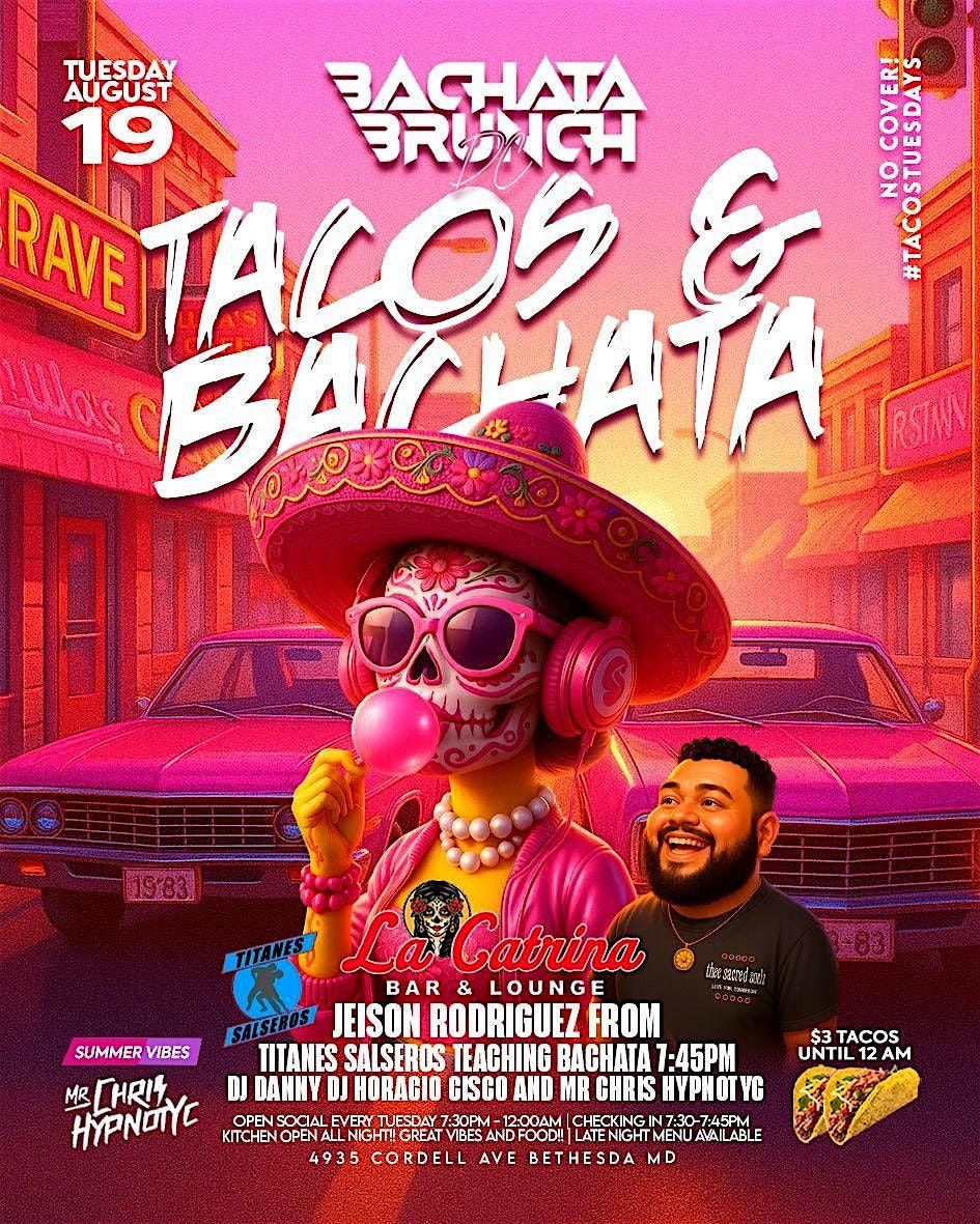 It’s Tuesday night and you’re dancing bachata with a smile on your face.Meet us at La Catrina (Bethesda) tonight!🕺 Bachata Class 7:45PM weekly with the best local and International instructors🎶 Social dancing 7:30PM–12AM🌮 Late night menu • No coverVibes by DJ Horacio & DJ DannyHosted by Cisco & Mr Chris HypnotycLet’s make this Tuesday unforgettable.